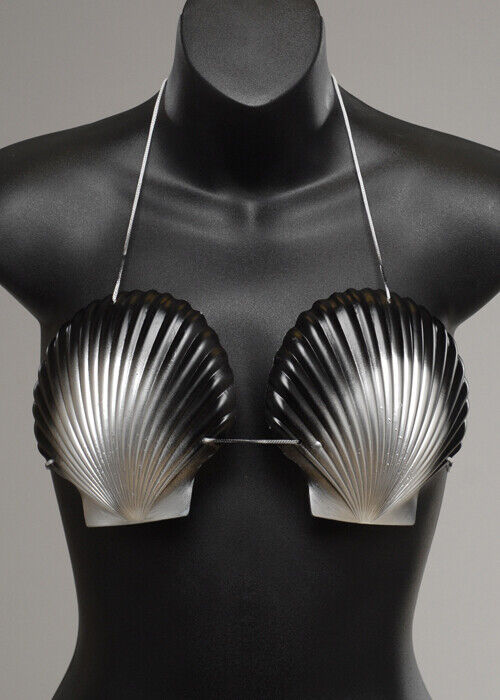 Womens Gothic Dark Mermaid Silver and Black Shell Bra Fancy Dress Accessory