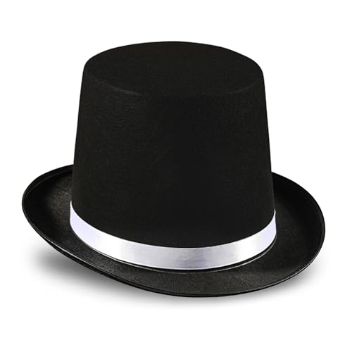 Dress Up America Top Hats for Adults - Black Magician Hat - Unisex Formal Tuxedo Hat - Red and Silver