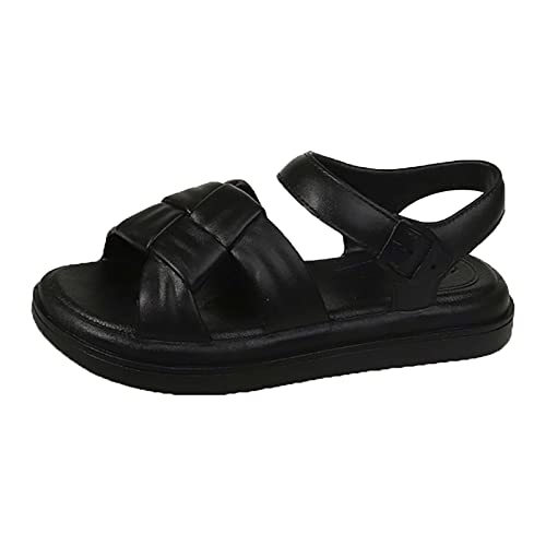Cocila Walking Sandals Fashion Summer Solid Color Leather Open Toe Flat Bottom (Black, 5) Womens Sandal Comfort With Back Strap Cream Wedge Orthopedic Shoes For Women Black And Silver Heels Wide