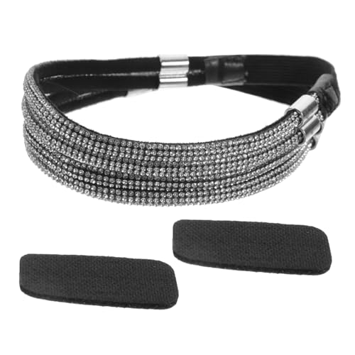 MOKKHNB Adjustable Elastic High Heel Straps Decorative Rhinestones Anti-loose Detachable Shoe Straps for Women’s Heels Black and Silver Buckle for Secure Fit