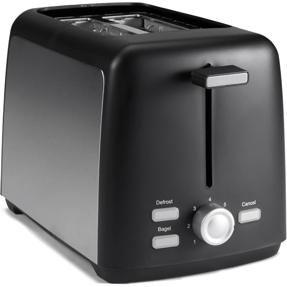 2-Slice Toaster, 7 Browning Levels, Extra-Wide Slots, Removable Crumb Tray, Cancel/Defrost/Bagel Buttons, 800W, Black & Silver