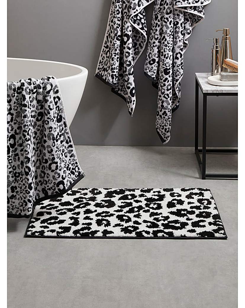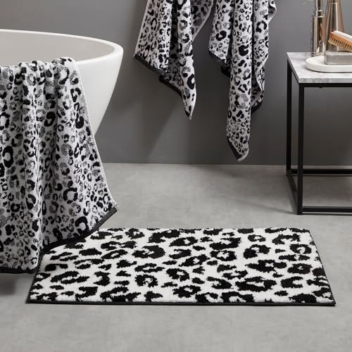 Fusion - Black White Animal Print Bath Mat (50 x 80cm) - 100% Cotton - Super Soft - Cheetah/Leopard Paw Print - Safari Zoo Animal Bathroom Mat - Absorbent Bath Mat - Bathroom Accessory
