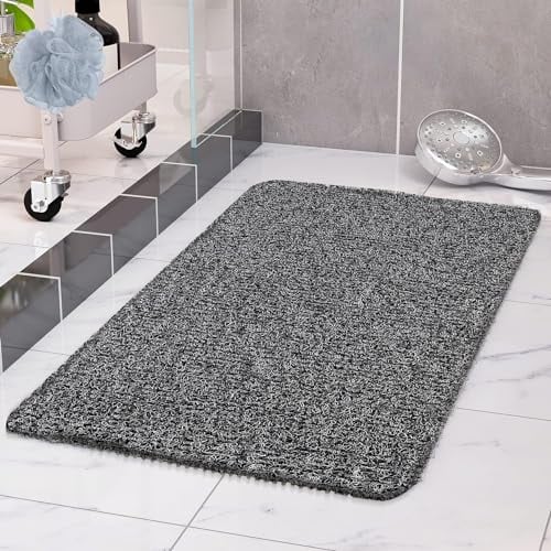 COSYLAND Non-Slip Shower Mat, 40 x 80 cm, Bath Mat Non-Slip with Drain, Soft PVC Loofah Non-Slip Shower Mat, Quick Non-Slip Bath Mat, Black and White