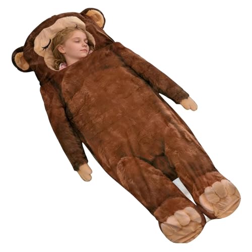 Sleeping Bag for Adults - Playful Monkey Design, Compact 30 x 20 cm Large Travel Bag, Black and White | Versatile Portable Bedding for Hiking, Backpacking, Relaxing at Home