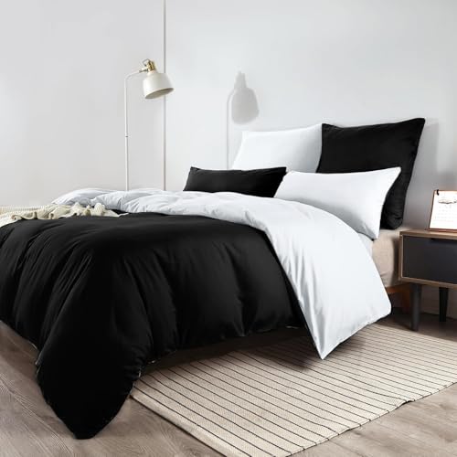 Aisbo Double Size Duvet Cover Set - 3Pcs Reversible Bedding Bed Set Black and White Double Soft Brushed Microfiber Quilt Cover with 2 Pillowcases 50x75cm