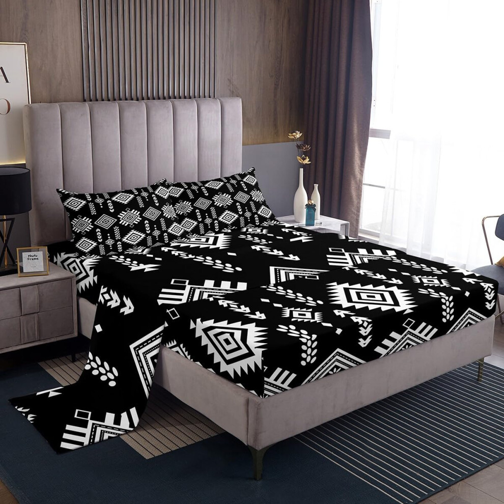 Aztec Queen Size Sheet Set Black and White Geometric Bedding Southwest Tribal Style