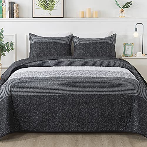 Andency King Size Quilt Set Black and White, 3 Pieces Grey Ultra Soft Lightweight Bedspreads & Coverlets Set, Patchwork Striped Quilted Bedding Sets for All Seasons (1 Quilt, 2 Pillow Shams)