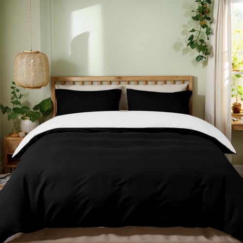 MIKI WELL Double Duvet Cover Set - 3Pcs Reversible Bedding Double Bed Set Black and White, Soft Microfiber Quilt Cover with 2 Pillowcases 50x75cm