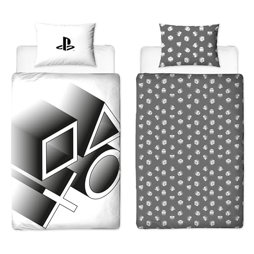 Character World PlayStation Official Single Duvet Cover Set | Stretch Gaming Design Reversible 2 Sided Bedding Including Matching Pillow Case Single Black and White Bed Set | Polycotton