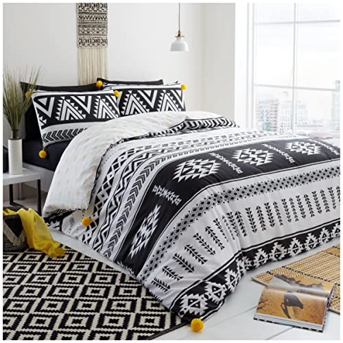 GC GAVENO CAVAILIA Home Collection Bedding, 3 Piece Cotton Blend Reversible Bedlinen Easy Care Bedset, White/Black, 1 Quilt Cover and 2 Matching Pillow Cases