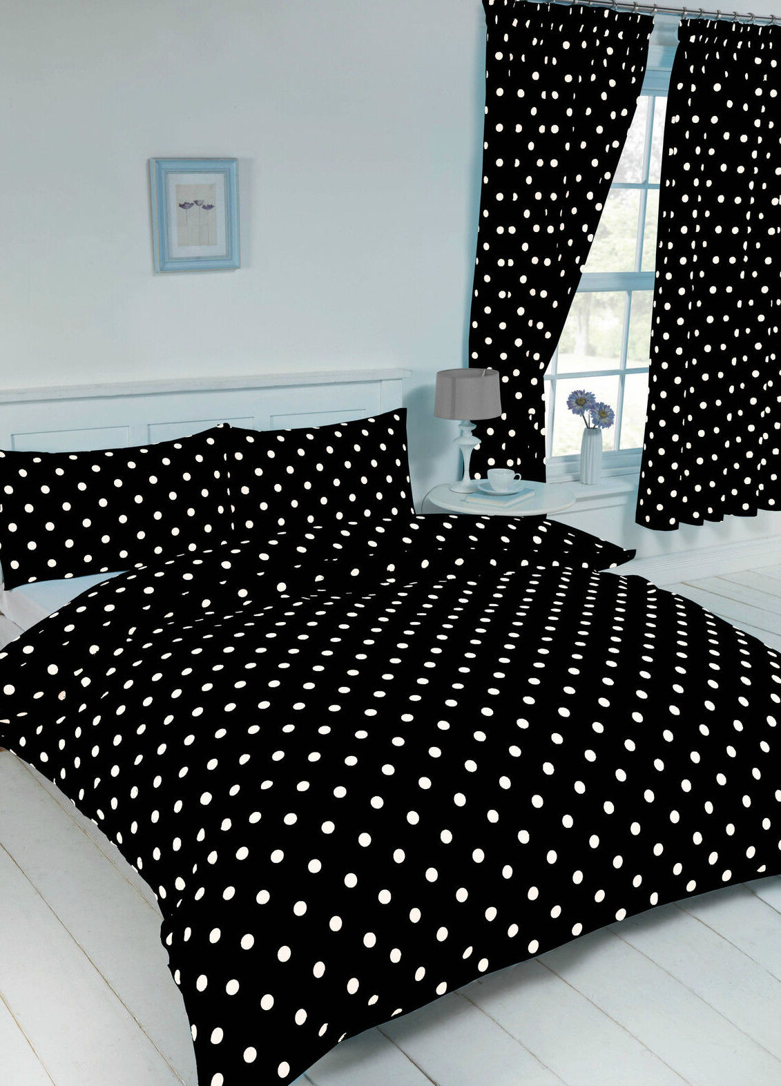 SINGLE BED DUVET COVER SET POLKA DOT BLACK WHITE REVERSIBLE SIMPLE BEDDING SET