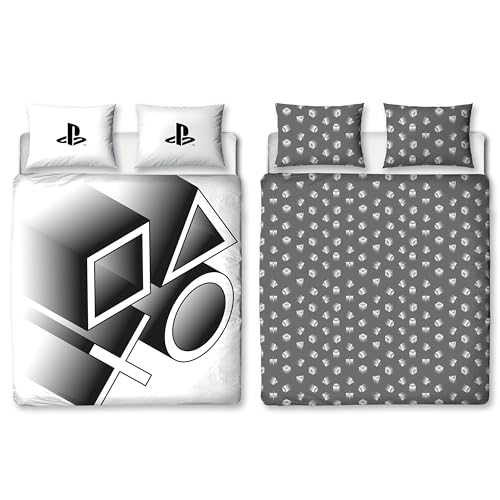 Character World Official PlayStation Double Duvet Cover Set | Stretch Design Reversible 2 Sided Bedding Including Matching Pillow Cases | Gaming Black and White Double Bed Set