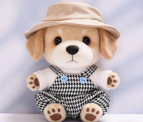 [2026 New 17cm Trendy Doll Clothes] Kimono, Knitted Cardigan Bucket hat Thousand Bird Grid Overalls 17cm Change Clothes Accessories (Black and White Thousand Bird Grid Overalls)