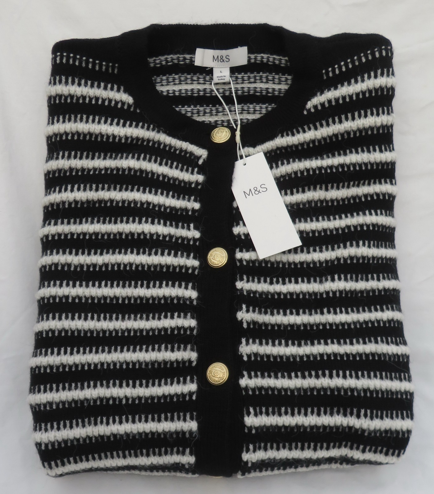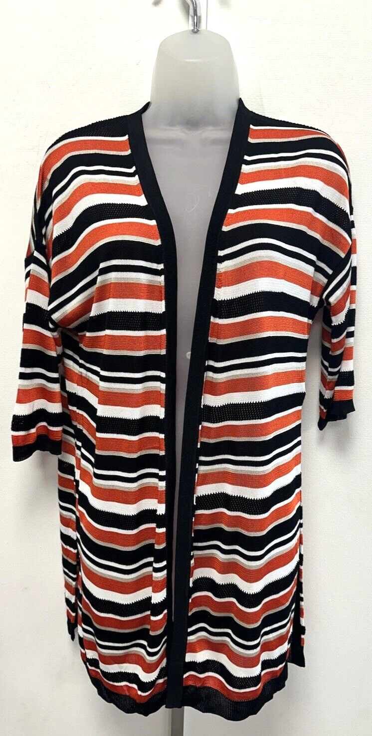 LADIES MARKS AND SPENCER BLACK AND WHITE STRIPED CARDIGAN SIZE L