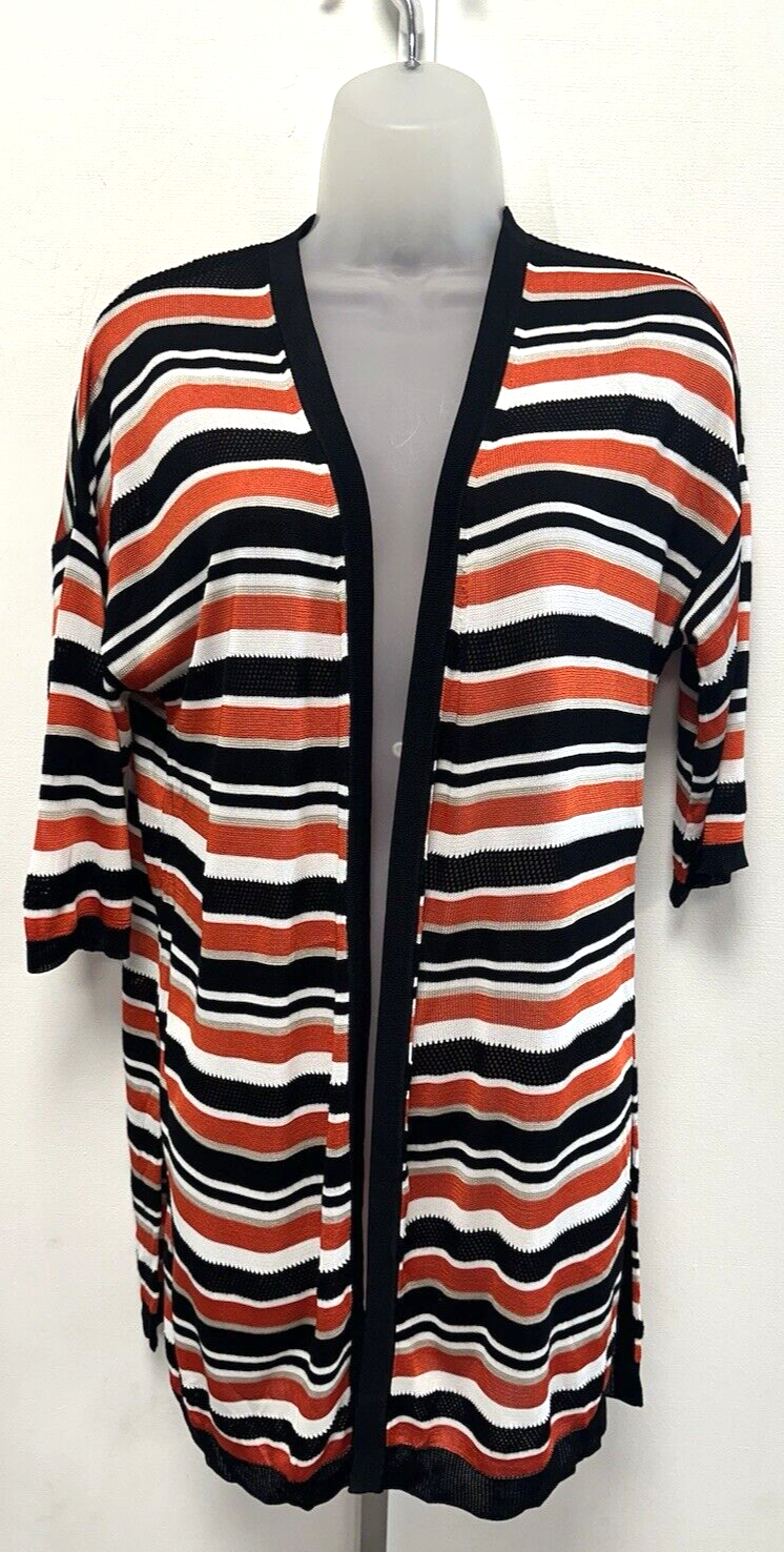 Fenia Women's Trendy Striped Knitted Cardigan Acrylic Black Wool White Size XL Sweater