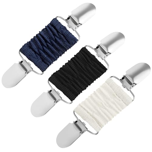 3PCS Fashion Dress Clips Back Cinch Clothes Clips To Tighten Dress Retro Cardigan Clip Back Cinch Dress Shirt Brooch Clip Buckle Waist Cincher Clip (White, Black, Navy Blue)