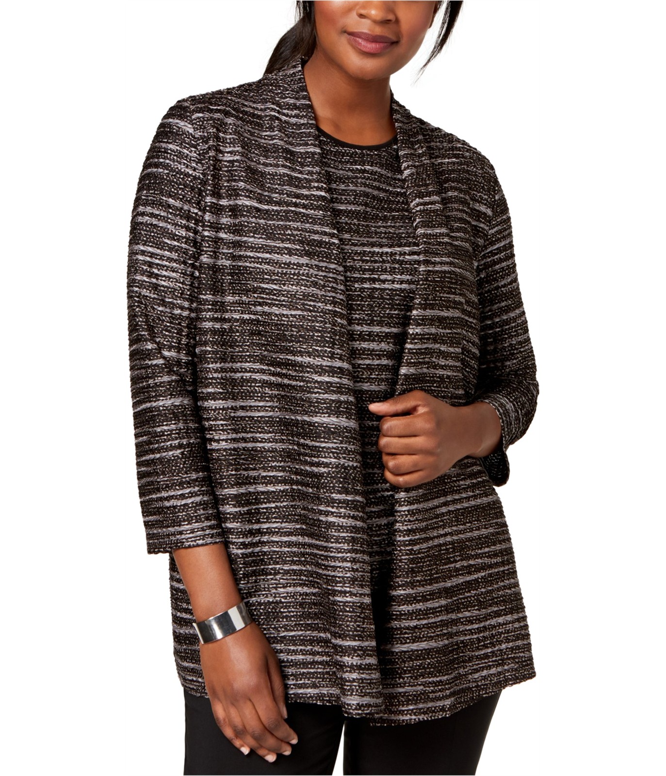 Kasper Womens Black/White Knit Cardigan Sweater, Multicoloured, X-Small