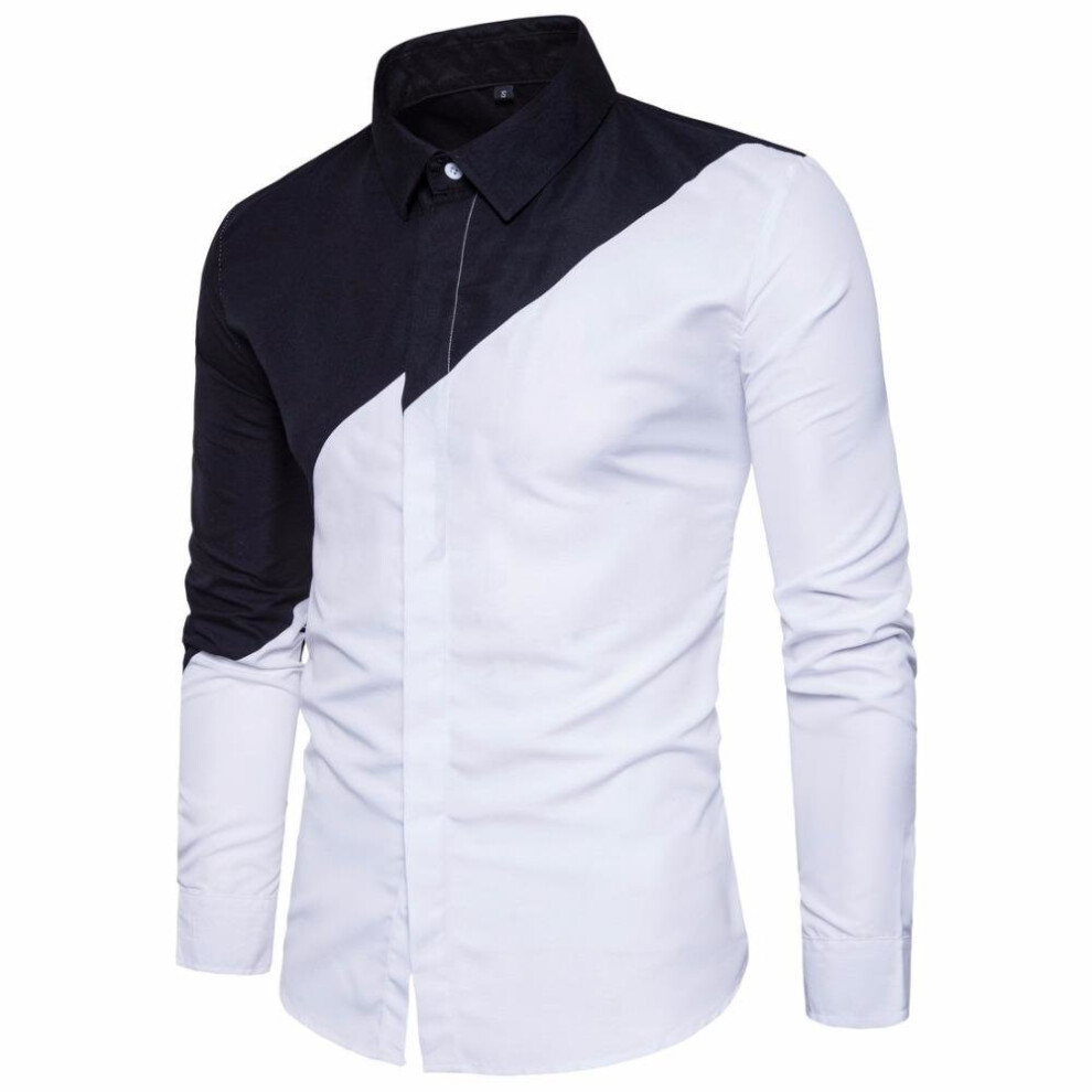 2017 Mens Cotton Black White Stitching Color Cardigan Shirts Fashion Men Lapel Large Size Long-sleeved Shirts Male S-2XL