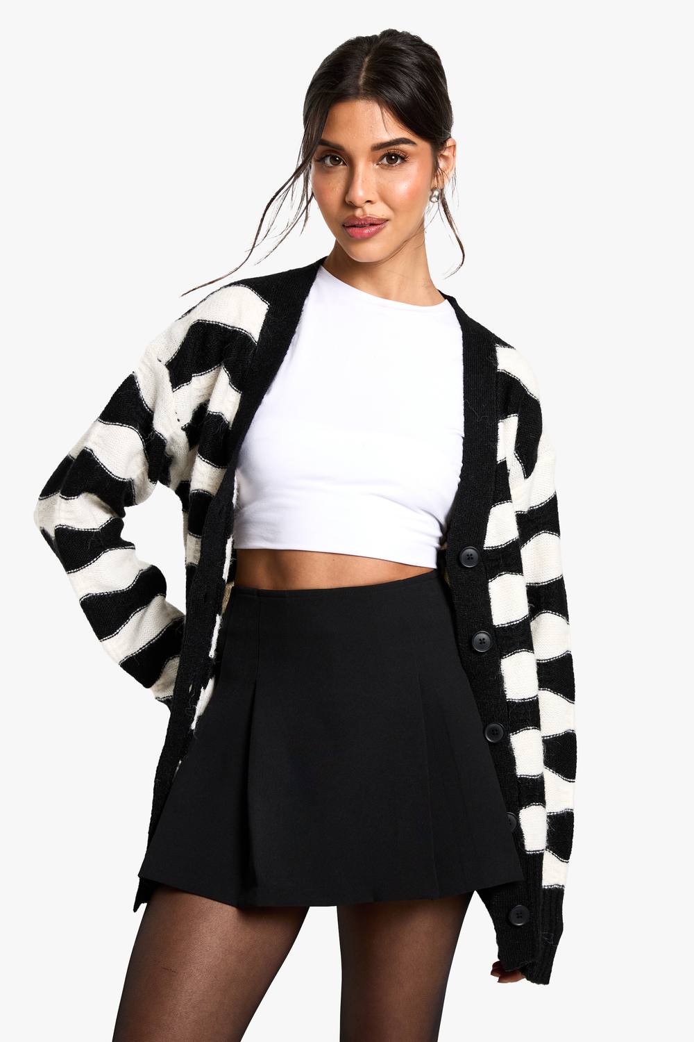 Womens Stripe Oversized Knitted Cardigan - Black & White - S, Black & White