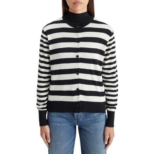 Scotch & Soda Women's Crew Neck Relaxed Cardigan Sweater, Black and White Stripe 7407, M