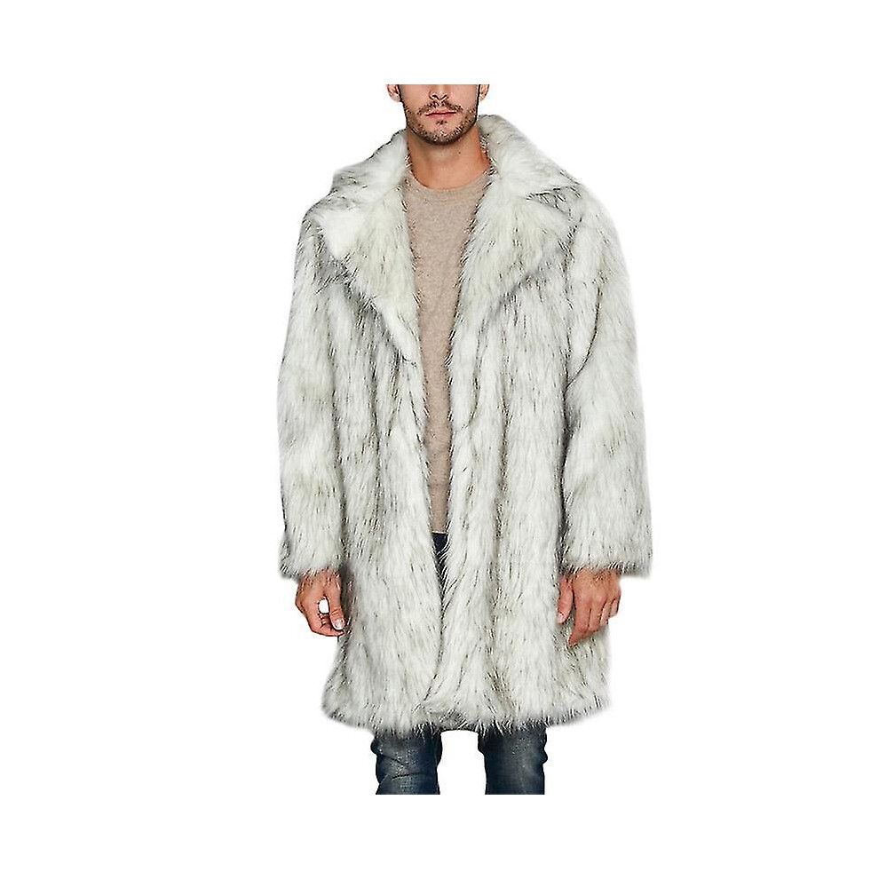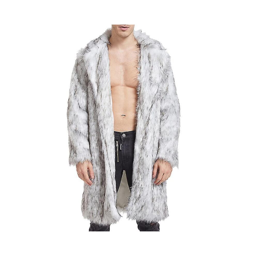 (L, A-black and white) Men's Luxury Faux Fur Cardigan Coat, Thicked Thermal Long Coat For Winter Ski Outfit