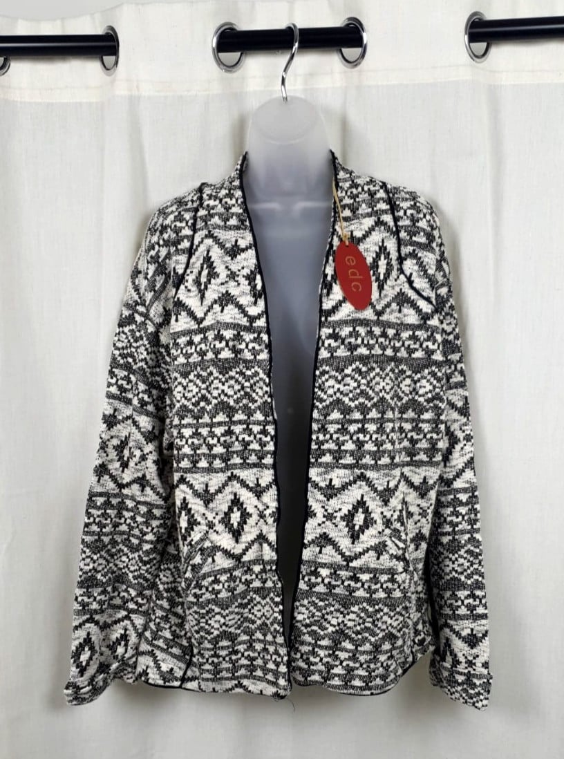Edc By Esprit Black & White Astec Fine Knit Open Cardigan Size M CR057 DD 08