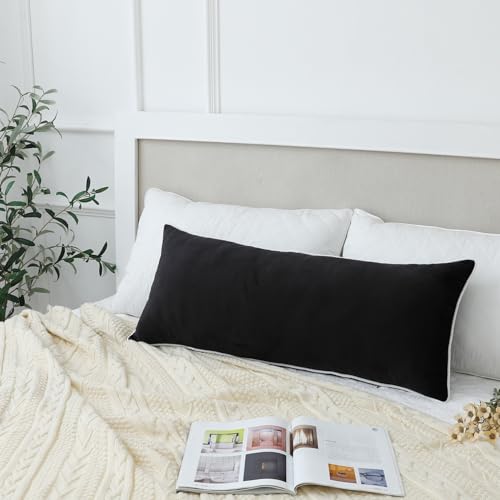 LIGICKY Long Lumbar Cushion Cover 14x36 inch Black Velvet White Rope Edging Throw Pillow Cover Decorative Rectangular Body Pillow Case Accent Textured Cushion Cover for Bed Couch