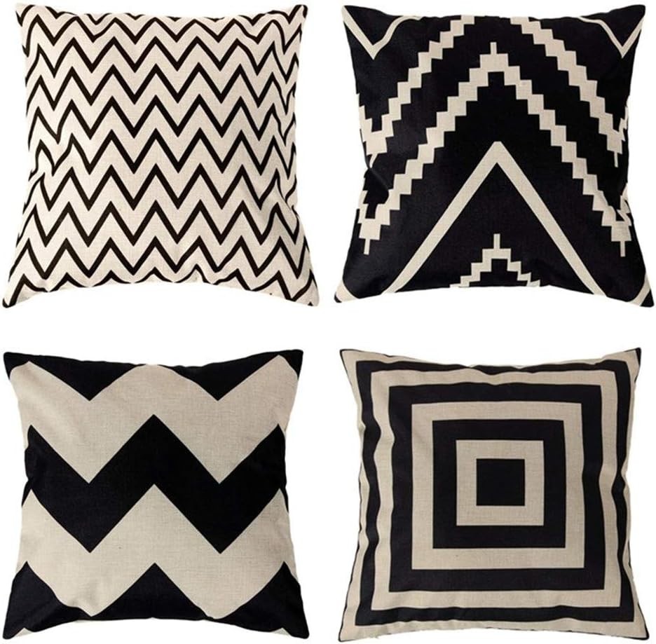 Wajade Black White Geometric Throw Pillow Cases 45 x 45 cm Pack of 4 Cotton Lin