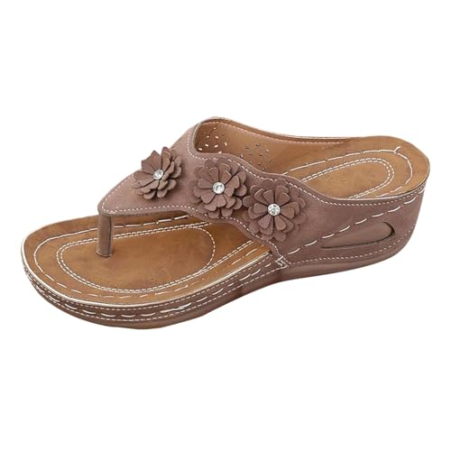 IUYTYSER Arch Support Flip Flops Women'S New Summer Slope Heel Flower Clip Toes Casual Thick Bottom Beach Slippers With Hard Soles For Women (Yellow, 42) Womens Flop Crocs Sliders Black Size 6 4