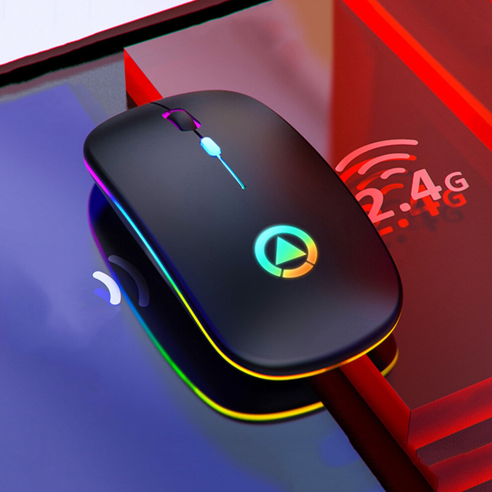 WREANU Wireless Bluetooth Mouse Rechargeable Laptop Mice with LED Lights Silent Slim Use(BT5.2 and 2.4G Portable USB) Dual Mode Computer Mouse for Laptop/iPad/Tablet/Apple/Computer/Mac (Black)