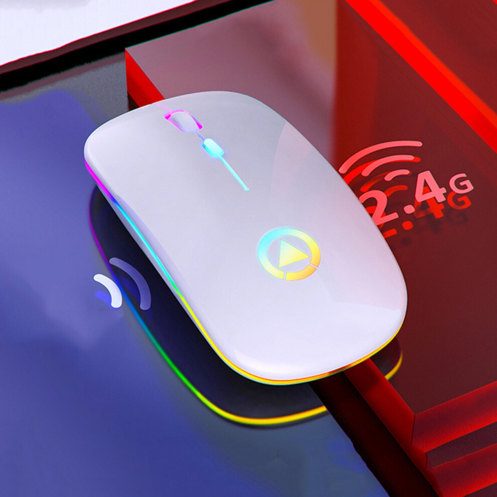 AIKOKOK Wireless Bluetooth Mouse Rechargeable Laptop Mice with LED Use Portable(BT5.2 and USB 2.4G) Dual Mode Connection Silent Slim Computer Mouse for Laptop/iPad Tablet/Apple MacBook/PC(Pearl Black)