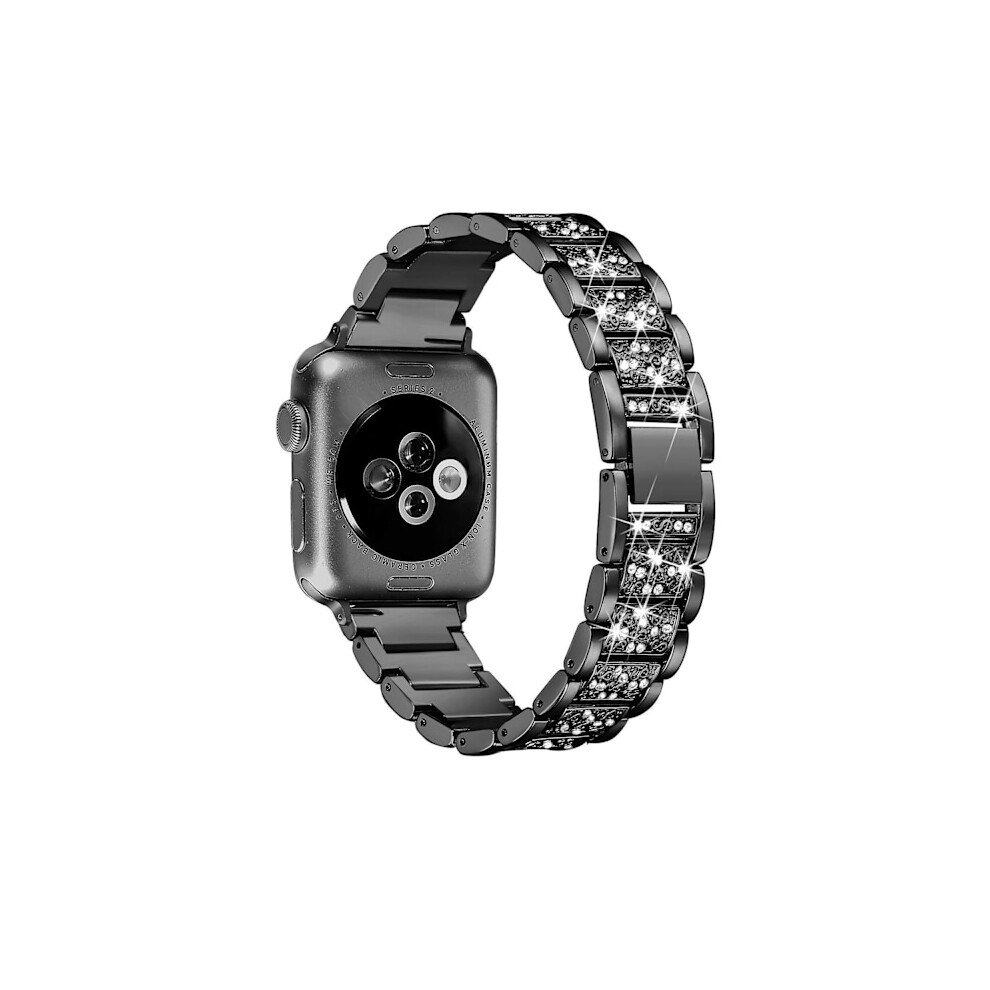 (Bling Black) Compatible with Apple Watch Band 42/44/45/49mm, Women's Sparkling Bling Crystal Stainless Steel Link Bracelet Replacement