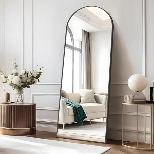 COFENY Arch Full Length Mirror, 179 x 65 cm Black Full Body Mirror with Aluminum Frame, Wall Mirrors Standing Leaning or Hanging, Floor Mirrors for Bedroom Living Room Entryway