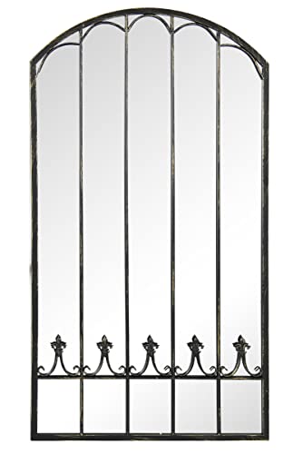 MirrorOutlet Extra Large Leaner Floor Standing Apartment Antique Black Metal Arch shaped Decorative Window Effect Large Wall Mirror, 160 x 85 x 2 (GMA031L)