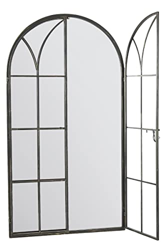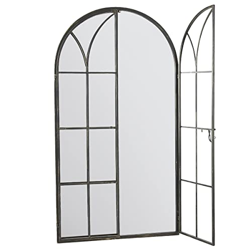 MirrorOutlet Large Metal Arch shaped Opening Doors Window Antique Black Wall Mirror 140cm X 75cm