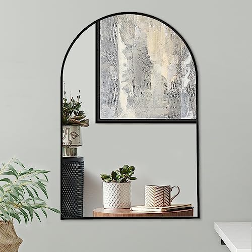 OUSHUAI Black Arch Mirror,Window Pane Wall Decor,Farmhouse Wall Mirrors with Iron Frame for Entryway,Hallway,Living Room,Fireplace.2-Pack 26.4"X13.4"