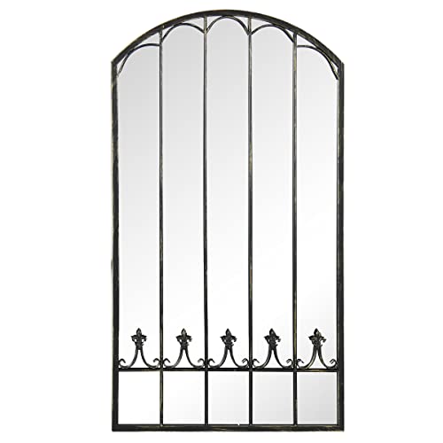 Window FA9 Black Rustic Arch Mirror - Elegant Vintage Style Light Weight Durable Frame Ornament With Plastic Back for Indoor/Outdoor Garden, 51x76cm