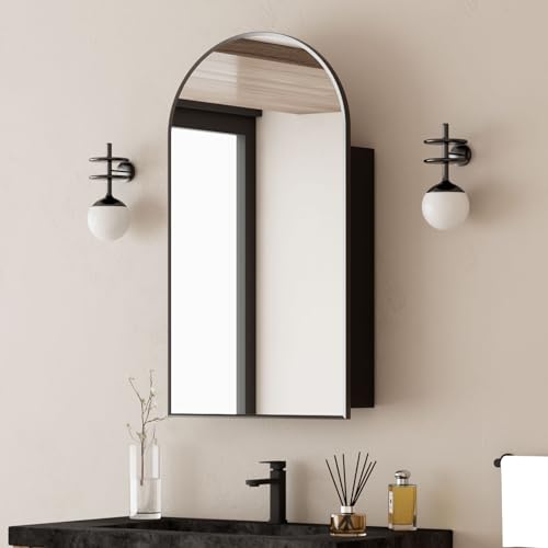 Mepplzian Black Bathroom Mirror Cabinet,Surface Mount Arched Mirrored Cabinets Bath Wall,Large Arch Mirrored Cabinets Wall Mounted,Bathroom Mirror with Storage 50x90 cm