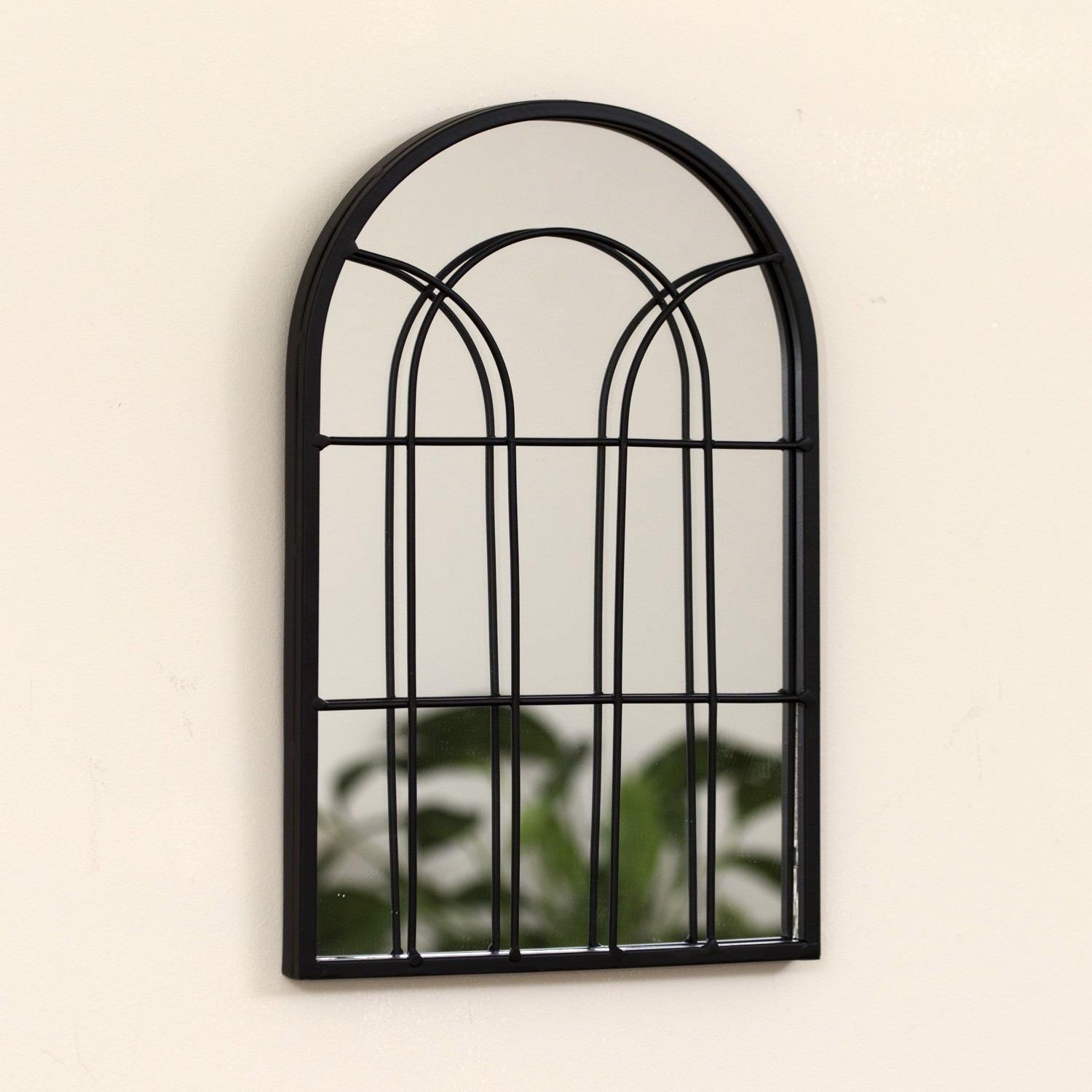 Black Small Arch Wall Mirror Matt Metal Window Frame Indoor Outdoor Wall Decor