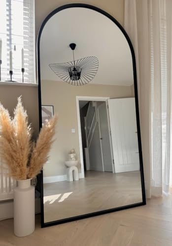 NEUWEABY Arched Floor Mirror 198x96cm Arch Full Length Mirror with Stand Black Large Wall Full Body Mirror Standing Hanging or Leaning Against Wall for Bedroom Entry, Living Room