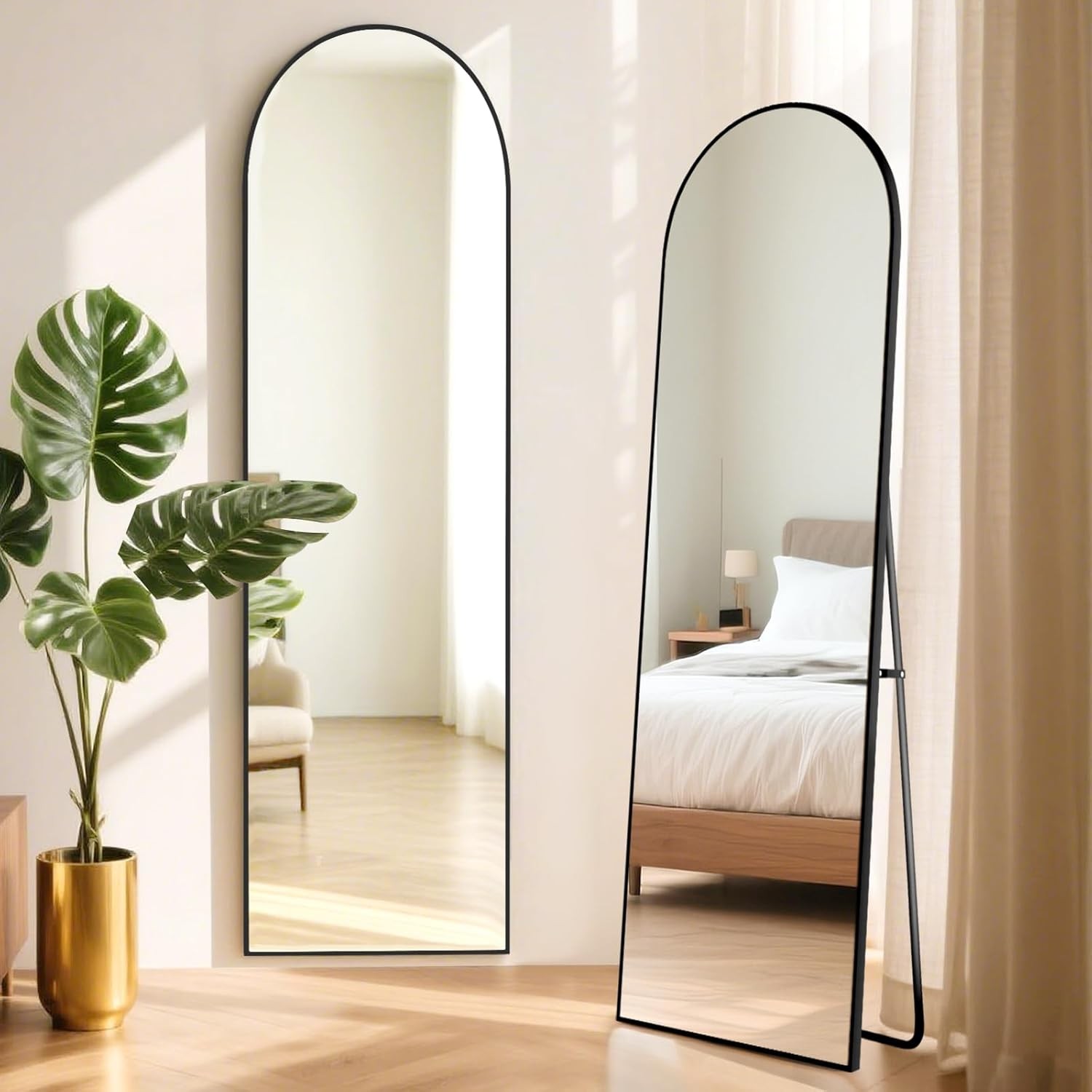 CASSILANDO Black Full Length Mirror 165cm×60cm Arch Floor Mirror with Aluminum Alloy Frame Standing Full Body Mirrors Hanging or Leaning for Bedroom Entry