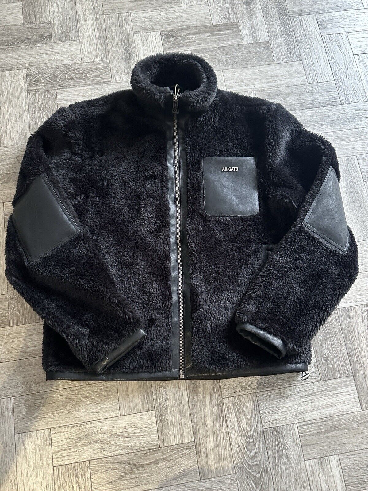 Axel Arigato Overshirt Jacket Aspen Teddy Black XL Chest Pocket Logo