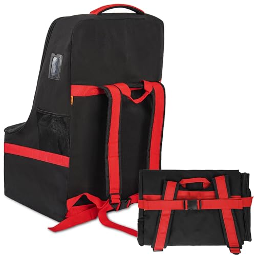 IBVIVIC Car Seat Travel Bag, Heavy Duty Car Seat Bag for Airplane Gate Check Carseat Carrier Bag with Shoulder Strap, Fits Most Baby & Infant Car Seats (Black Red)