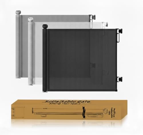 (Black) Retractable Baby Gate, Retractable Dog Gate for Stairs