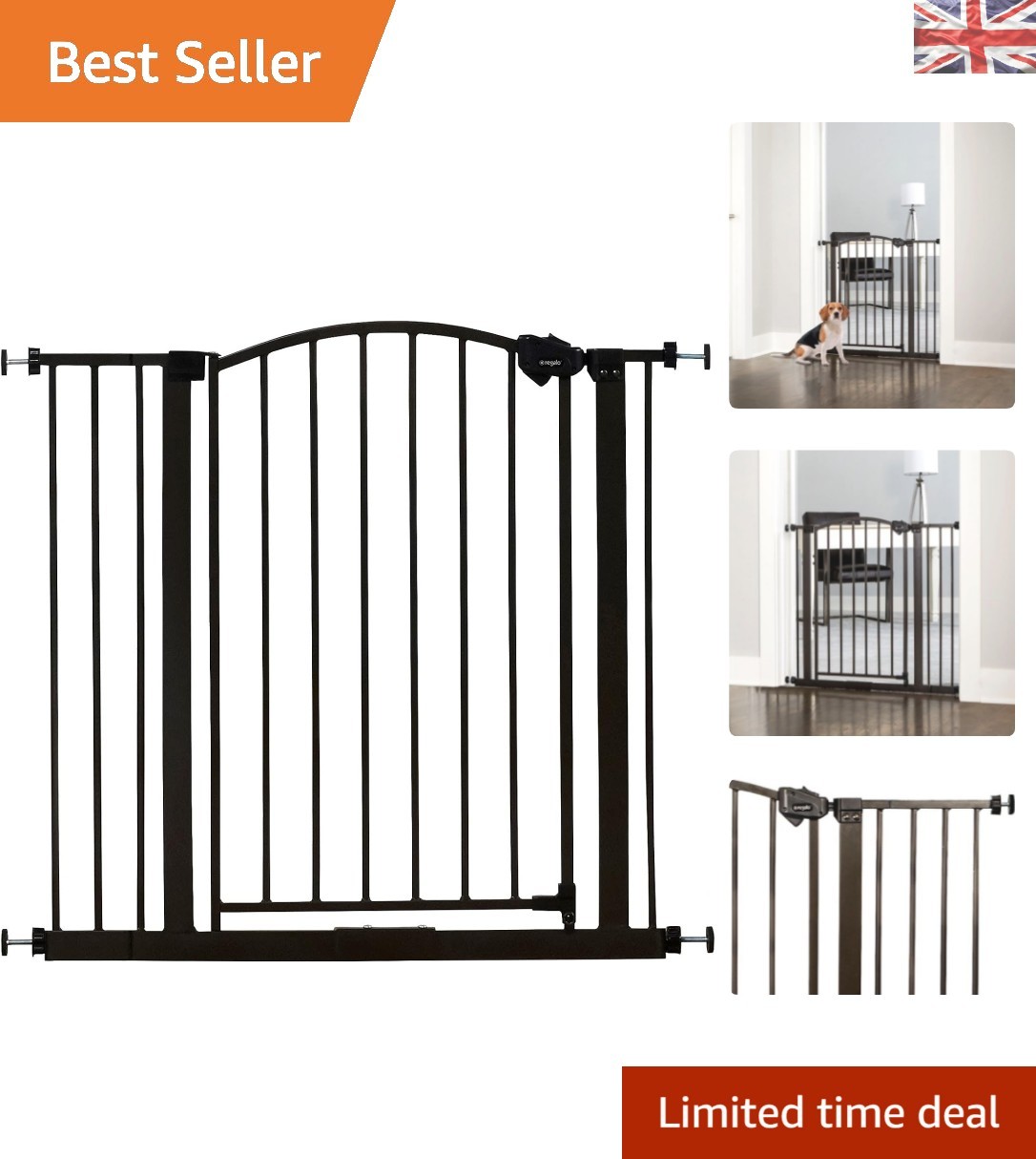 Regalo Easy Step Arched Décor Walk Thru Baby Gate, Includes 4-Inch Extension to Fit Multiple Openings, 4 Pack Pressure Mount Kit and 4 Pack Wall Mount Kit, Black