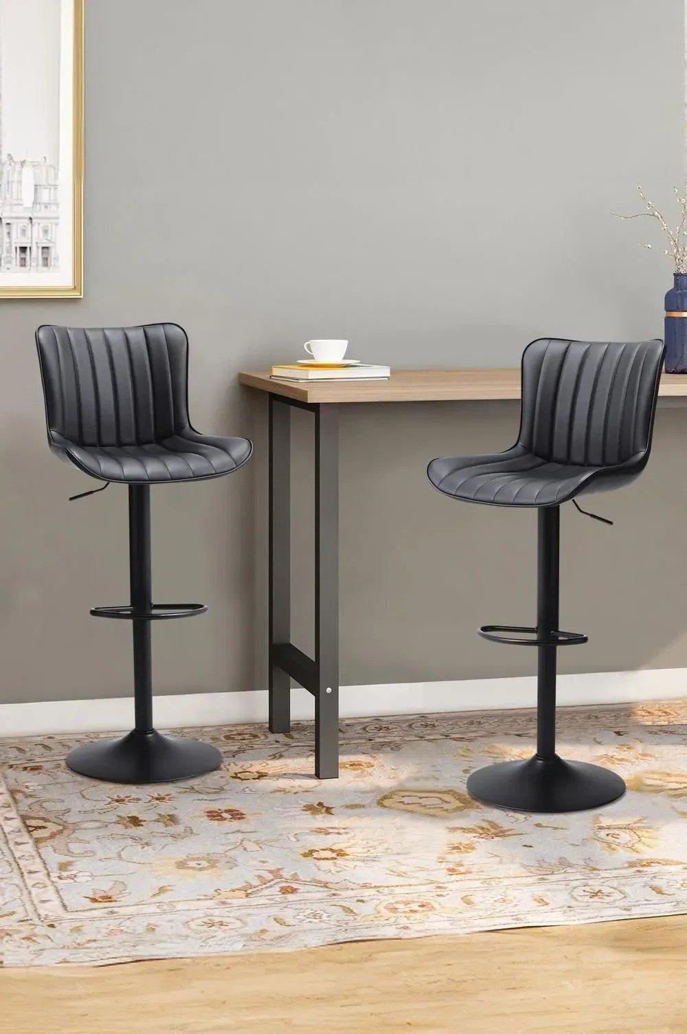 Set of 2 Faux Leather Black Stripe Bar Stool Adjustable Height Footrest Seat