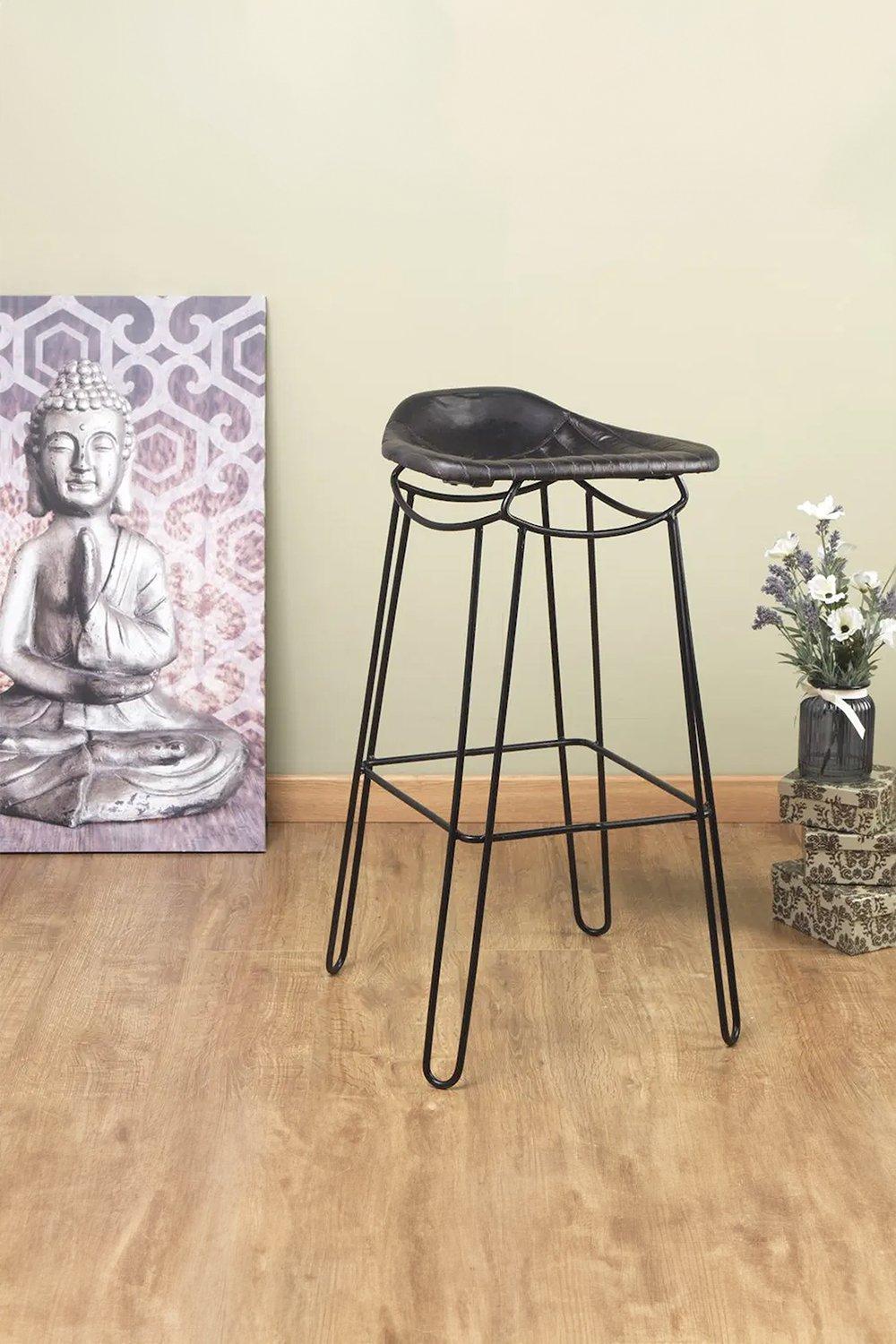 Genuine Black Leather Artisan Bar Stool Rustic Handmade Design
