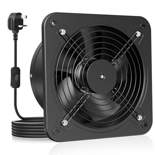 HG Power 250mm Kitchen Extractor Fan 1680m³/h | Quiet Wall Ventilation Fan with On/Off Switch, UK Plug, Exhaust Fan with Backdraft Damper for Bathroom, Kitchen, Garage – Black