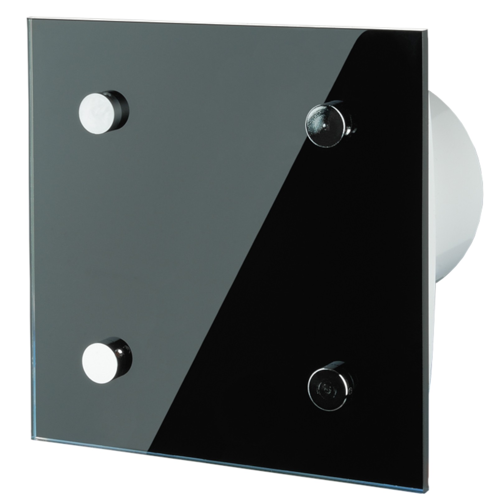 Black 100 mm Stylish Glass Front Bathroom Extractor fan with Timer and Humidity