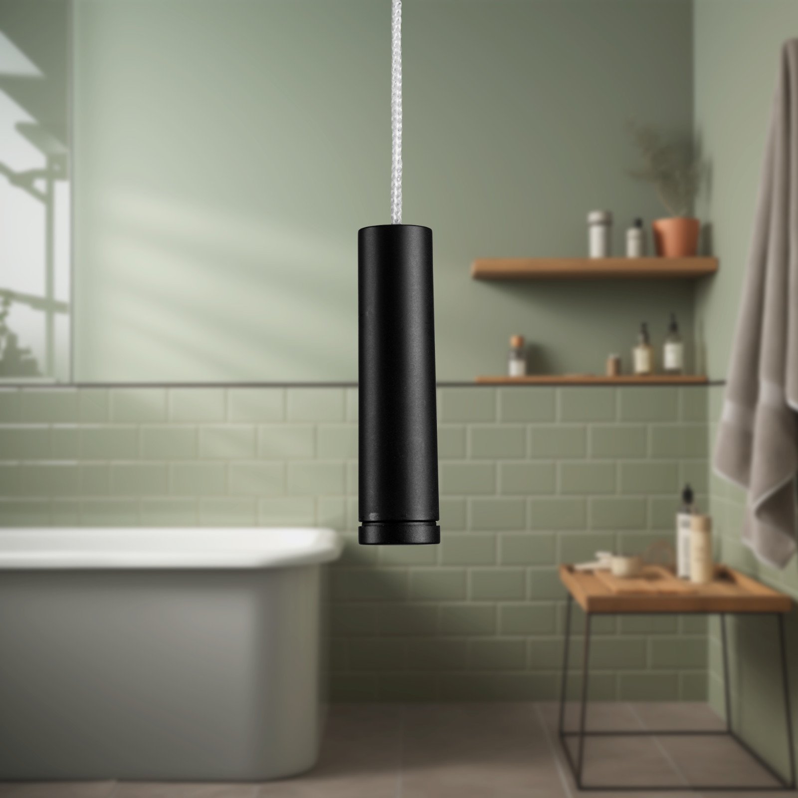 CubeTECH Bathroom Light Pull Cord and Fitting Kit - Black Bathroom Light Switch with Ceiling Pendant Cord, Accessory